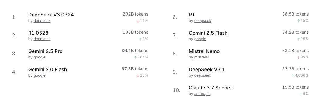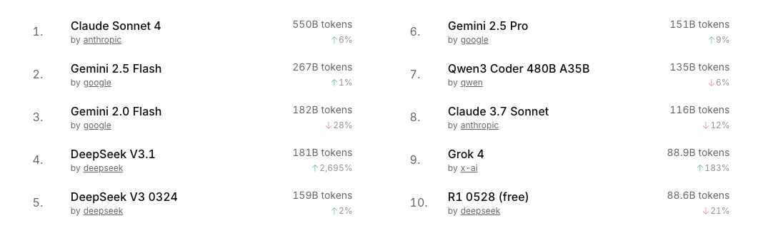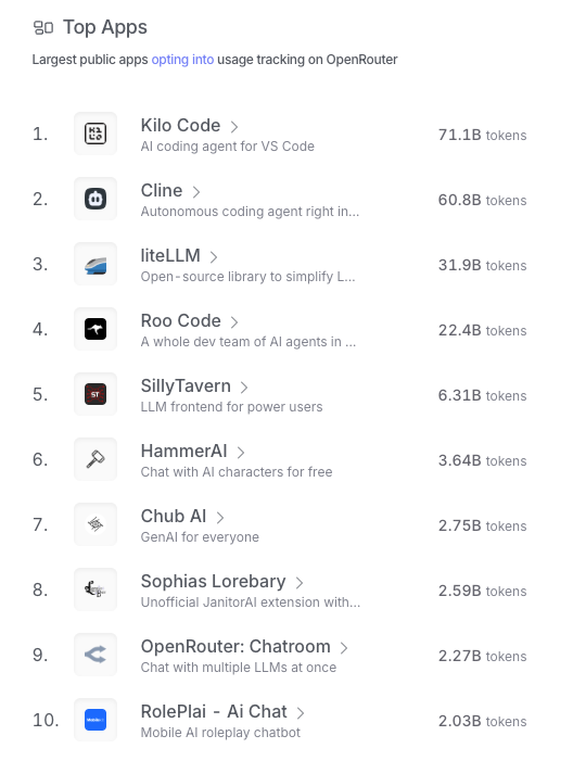 Another interesting datapoint on OpenRouter is that roleplay apps use different models than programming apps: